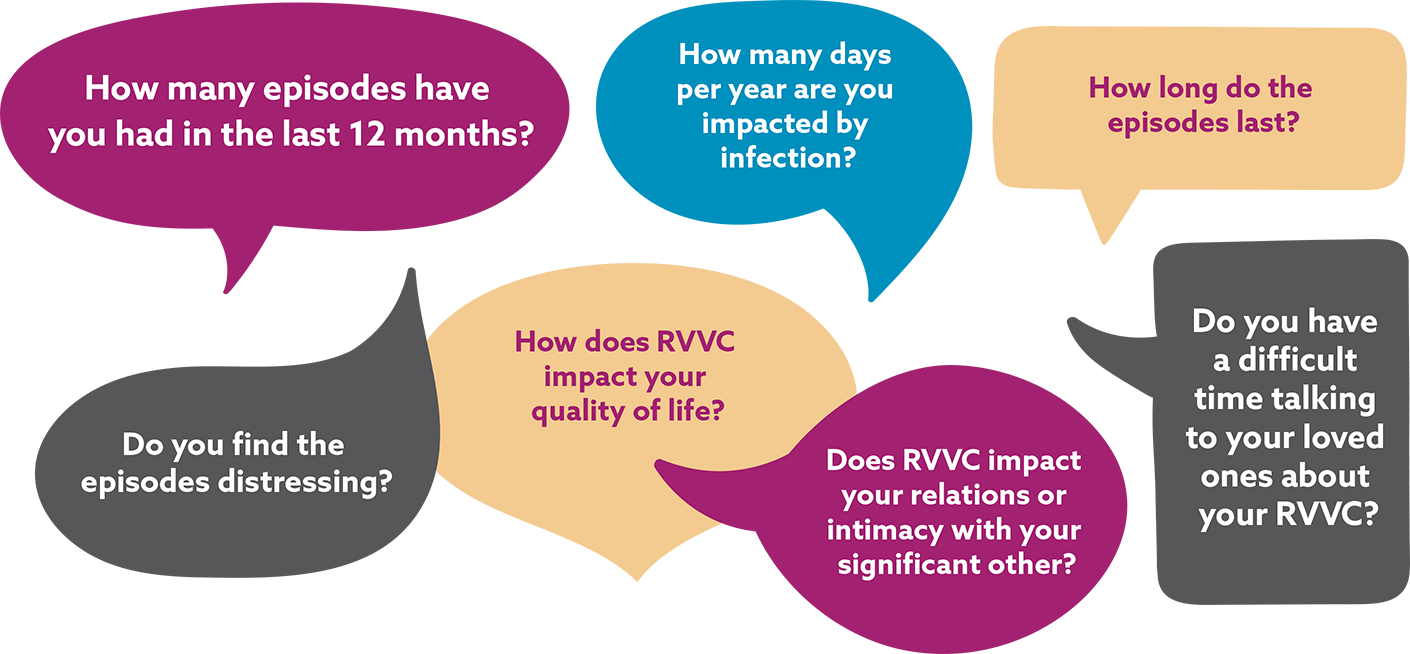 Encourage your patients to discuss openly and honestly any physical, emotional, or mental impacts they experience so you can work together to fight RVVC. Use the questions below to help start the conversation: