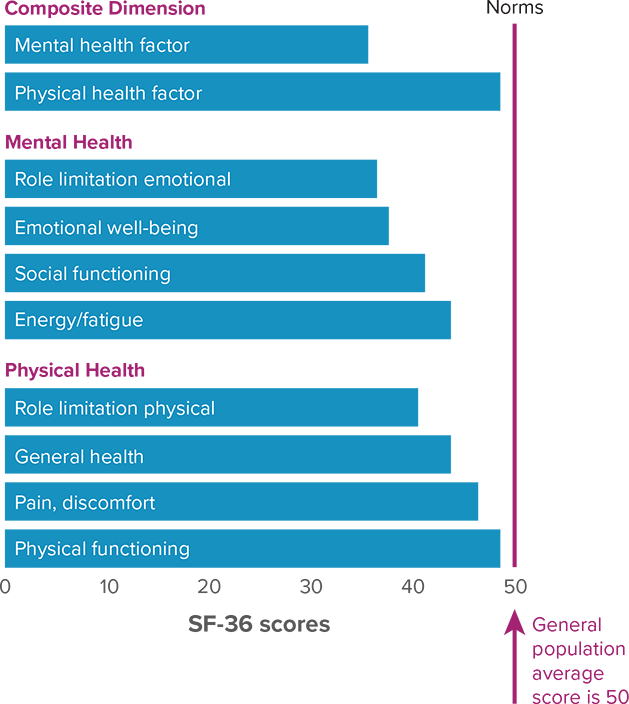 SF-36 is a validated questionnaire that describes the disease burden in terms of health-related quality of life compared to the general population.